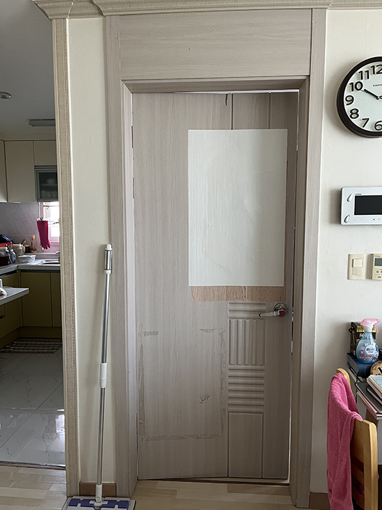문짝을 교체하고 나니 종이시트지도 안보이고