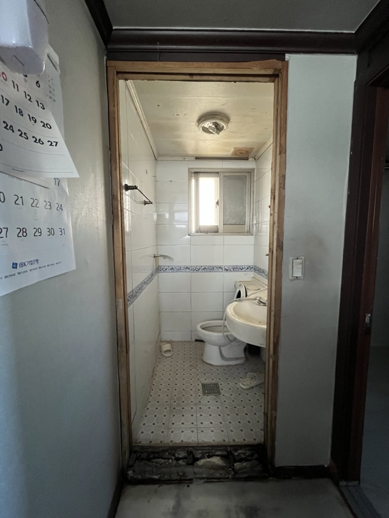 빌라가 오래 되어 화장실 문틀과 문짝이 썩고 낡아
