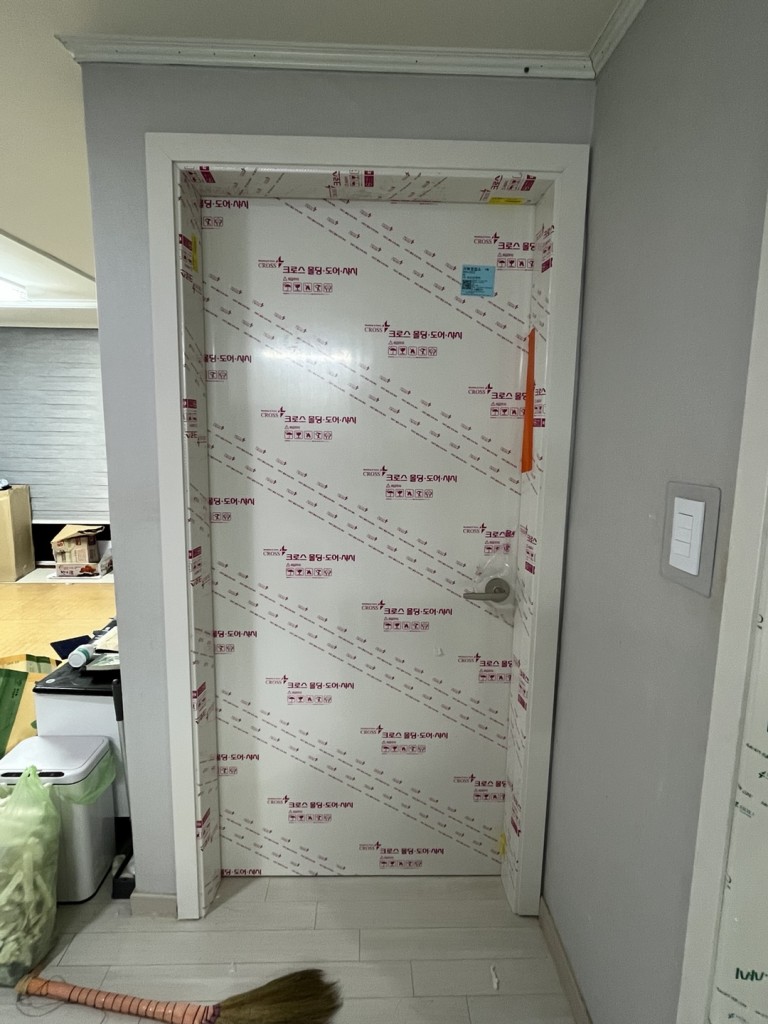 도배시공하기 전에 문틀과 문짝을 시공하고